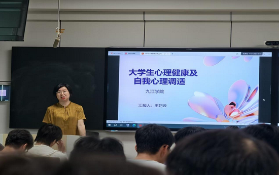 针对老员工活实际,王教授分析了学业压力、人际关系、就业焦虑等常见心理困扰。她通过具体案例提醒同学们:“心理问题如果不及时调整,会逐渐积累影响身心健康和学业发展。” 这让在场员工意识到主动进行心理调适的重要性。