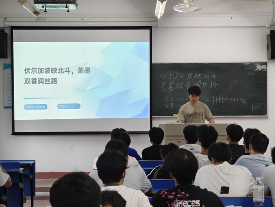 在“茶墨双香” 特色环节,主讲人化身文化使者,带领同学们回溯千年时光。从汉代张骞出使西域,茶叶与丝绸、瓷器一同踏上漫漫丝路,到唐代茶文化东传日本、西渐波斯,再到书画艺术借助宣纸、墨锭等独特材料远播海外,每一段历史故事都令人神往。结合材料学科特色,主讲人深入剖析了陶瓷茶具烧制时釉料配方与火候控制的科学奥秘,以及宣纸制作中檀皮与稻草纤维配比的精妙之处,让同学们深刻感受到中华文化的博大精深与材料科学的紧密联系。